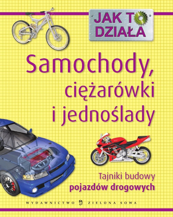 Dowiedz się, jak funkcjonuje 15 różnych pojazdów drogowych, od pierwszych rowerów po nowoczesne wozy strażackie. Sposób działania mechanizmów obrazują rysunki, a na kolorowych fotografiach można zobaczyć cały pojazd "w akcji". Każdy rozdział zawiera informacje o historii pojazdów, sposobie ich poruszania się, mechanizmach wewnętrznych oraz perspektywach ich rozwoju w przyszłości. [Zielona Sowa, 2010]
